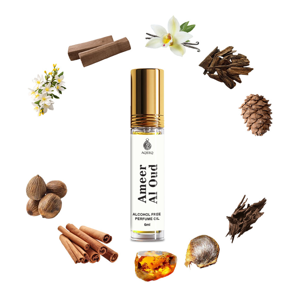 Aqeeq Ameer Al Oud Attar For Men & Women | Oriental Unisex Attar Roll On | Oud Jasmine Musk Sandalwood Notes | 6ml