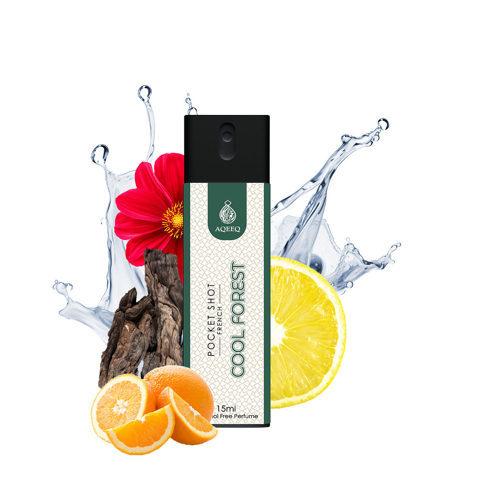 Aqeeq Cool Forest Pocket Shot, 15ml | Premium Long Lasting Unisex Alcohol Free Perfume | Fresh, Floral & Woody Notes | Eau De Parfum |