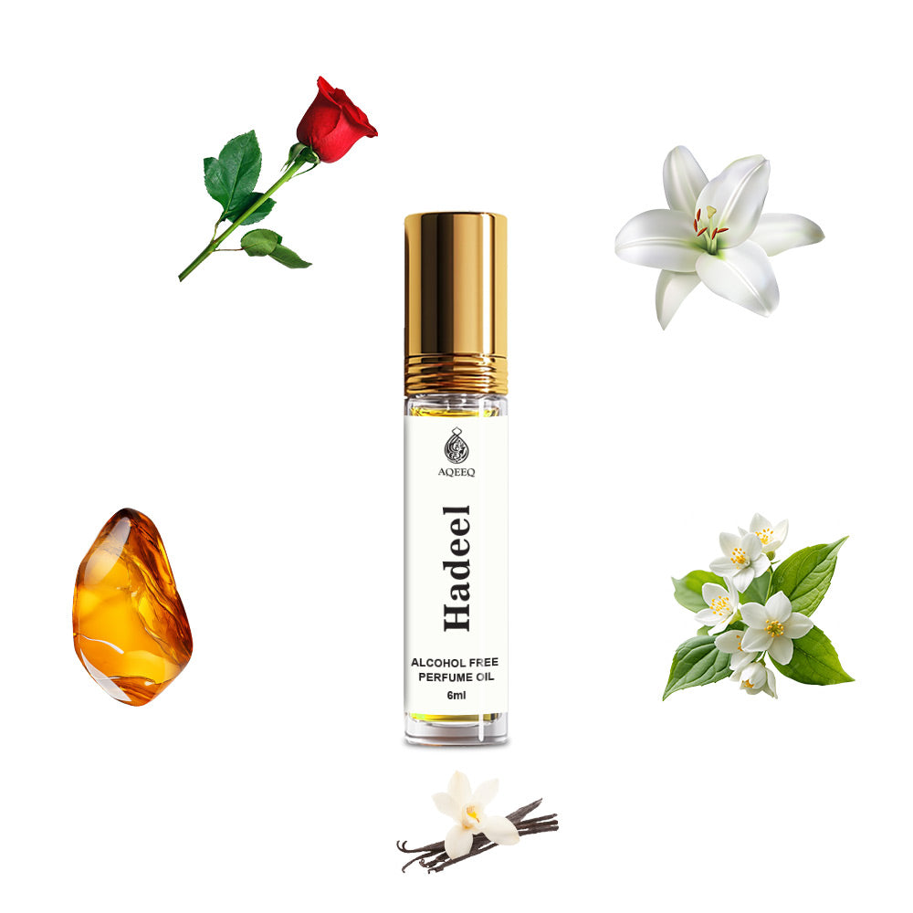 Aqeeq Hadeel is designed for the modern, confident woman who appreciates a refined fragrance that transitions effortlessly from day to night. If you love a fresh attar for women in the morning, a romantic rose attar for women for outings, or a deep woody attar for women palette for evenings—this roll on covers all those moods.