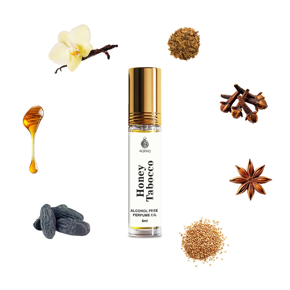 Aqeeq Honey Tobacco Attar For Men & Women | Long Lasting Spicy Woody Perfume Oil Roll On | 6ml