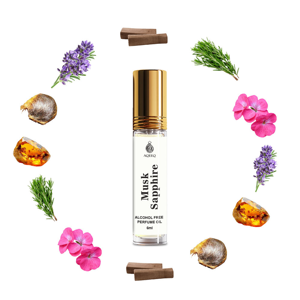 Aqeeq Musk Sapphire Long Lasting Unisex Attar | Oriental Arabian Attar For Men & Women | Fresh Musk Amber Notes | 6ml