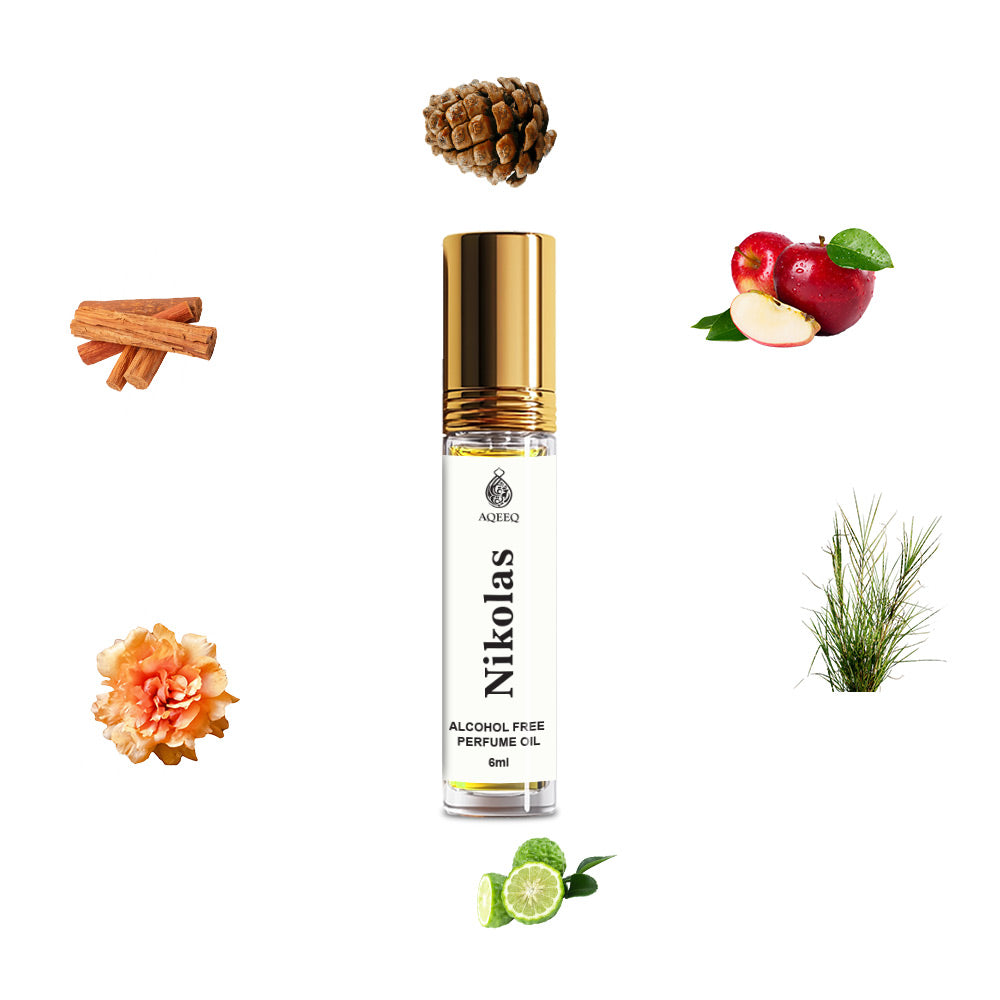 Experience the timeless charm of Aqeeq Nikolas Premium Attar Roll On (6ml) — a long lasting luxury attar for men crafted to express confidence, freshness, and refined masculinity.