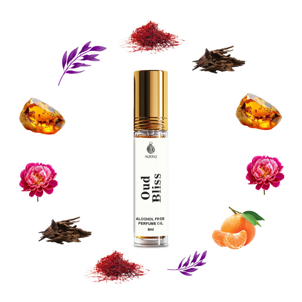 Discover the elegance of Aqeeq Oud Bliss, a rich and refined roll-on attar crafted to last through your day. This premium attar blends the warmth of saffron and amber with the depth of agarwood (oud), all in a skin-friendly, alcohol-free oil form. Perfect for daily wear, special occasions, or gifting.