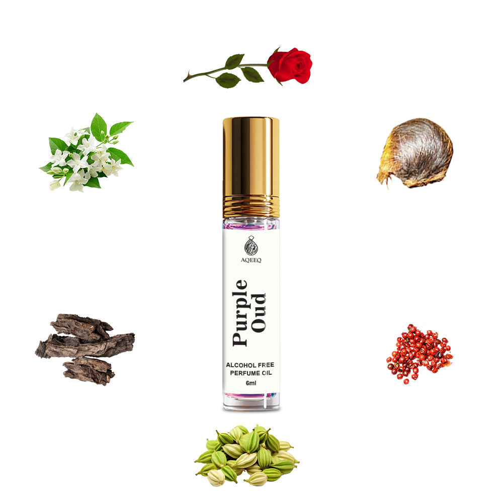 Aqeeq Purple Oud Attar Roll-On (6 ml) – Long-Lasting Luxury Attar for Men & Women